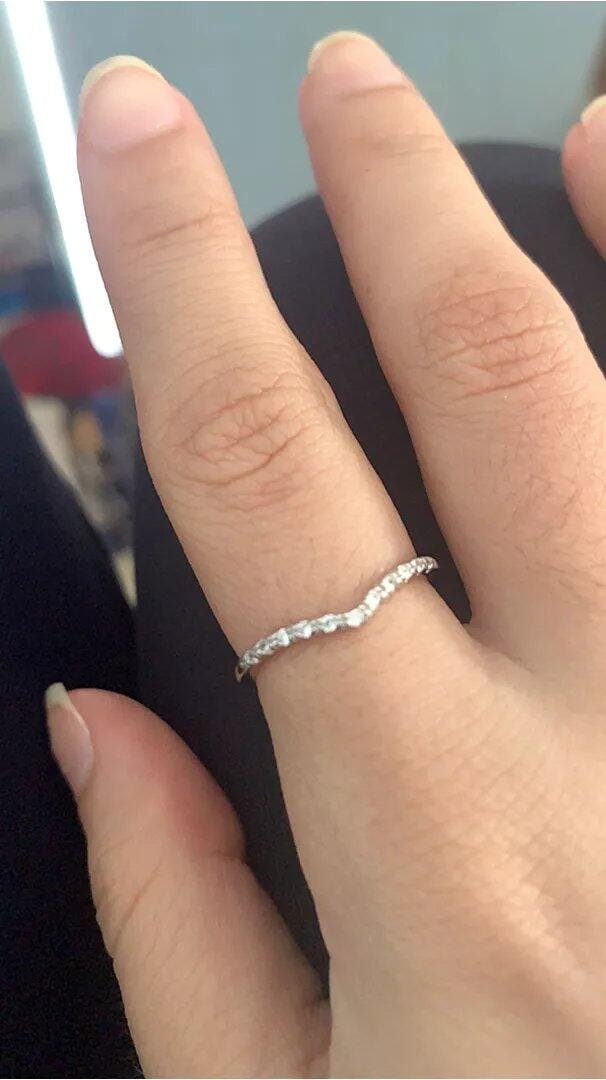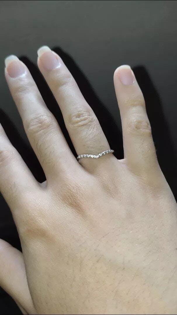 Seu design em V alonga visualmente os dedos e cria um visual contemporâneo, lindo sozinho ou combinado com outros anéis.